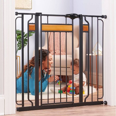 Spacers designed specifically for baby gates are available at baby supply stores. Slide the Safety Lock back. Easy slide latch that automatically locks when pushed closed.